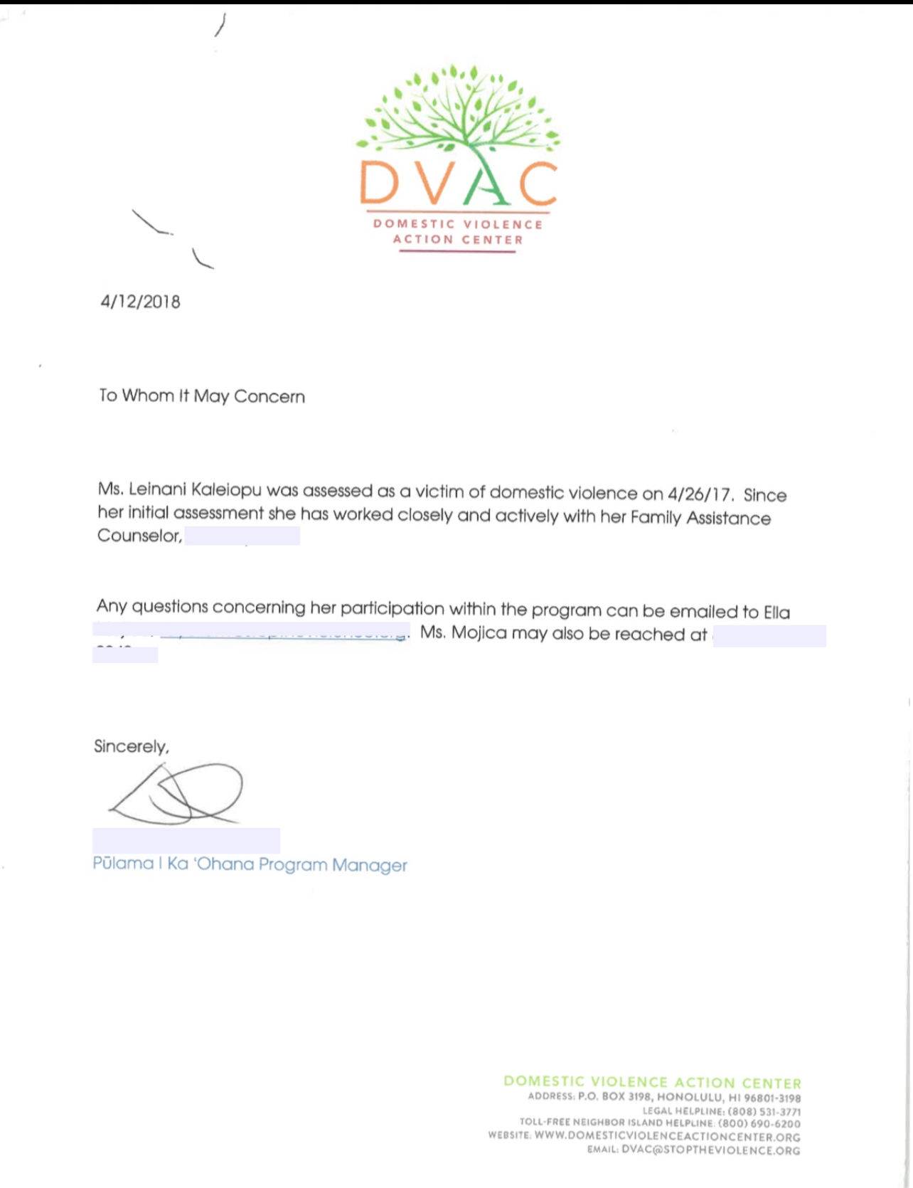 SERVICES PROVIDED: